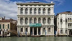 The palace was begun by Baldassare Longhena for the noble family of Bon. In 1682 the architect died before the palace was completed: only two floors were built. In 1751 the palace was bought by Giambattista Rezzonico, a wealthy Lombard who had moved to Venice. Rezzonico commissioned Giorgio Massari to finish the palace, which was completed in 1756. Many famous artists took part in the decoration of the palace: Giambattista Croasto, Pietro Visconti, Giambattista Tiepolo, Jacopo Guarana, Gaspare Diziani. Massari completed the main façade according to Longhena’s design, and modified the rear façade with a lavishly decorated entrance, a magnificent grand staircase and an unusual ballroom for which the third floor was removed.