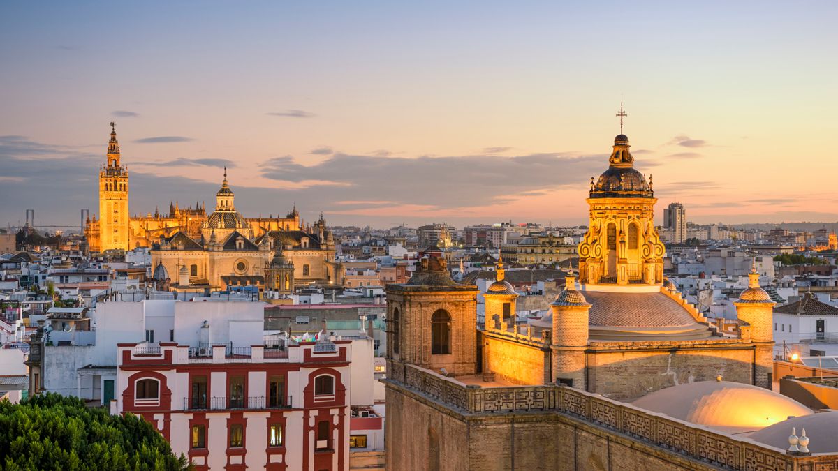 See – Plaza de España. Cathedral, Royal Alcazar, Santa Cruz neighborhood, Hotel Alfonso XIII.