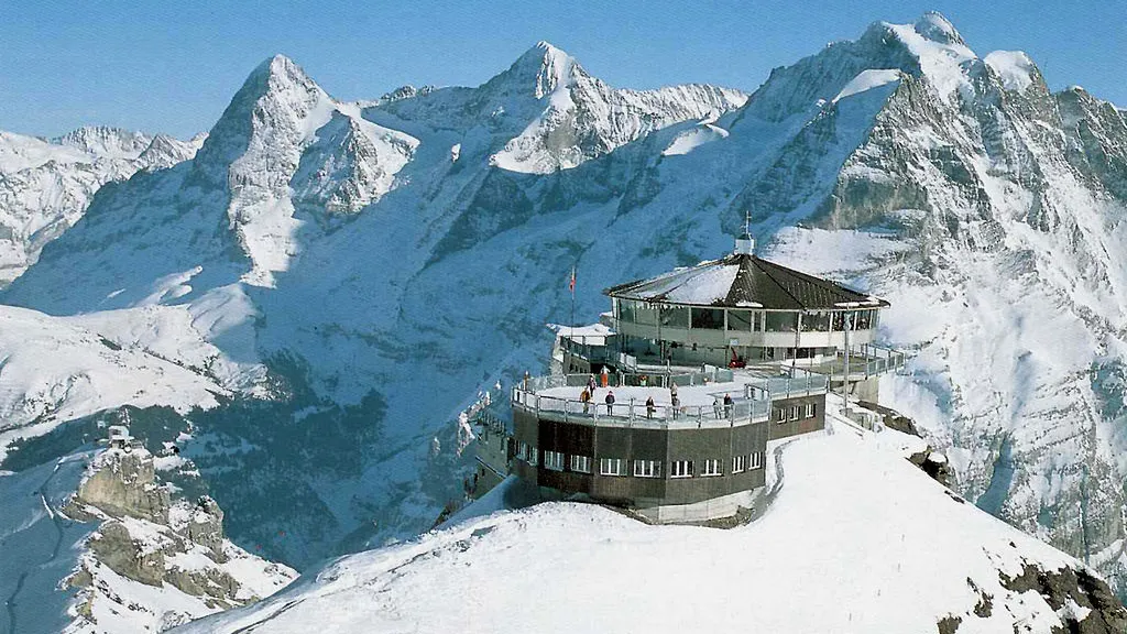 Schilthorn Mountain (Schilthorn) – a journey in the footsteps of James Bond on the longest cable car in the Alps, taking about an hour. This is where the first episode of the film was shot. You will see stunning alpine glaciers and grottoes and visit the world’s first mountain-top revolving restaurant, Piz Gloria, at 2971 metres.