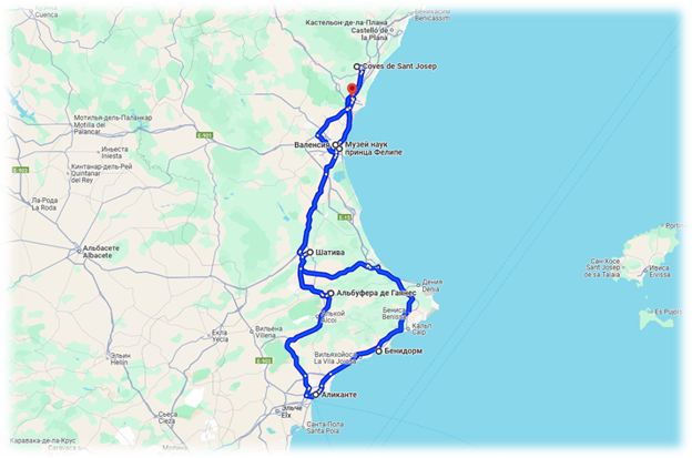 Travel time: approximately 50 minutes (~65 km) from Valencia.