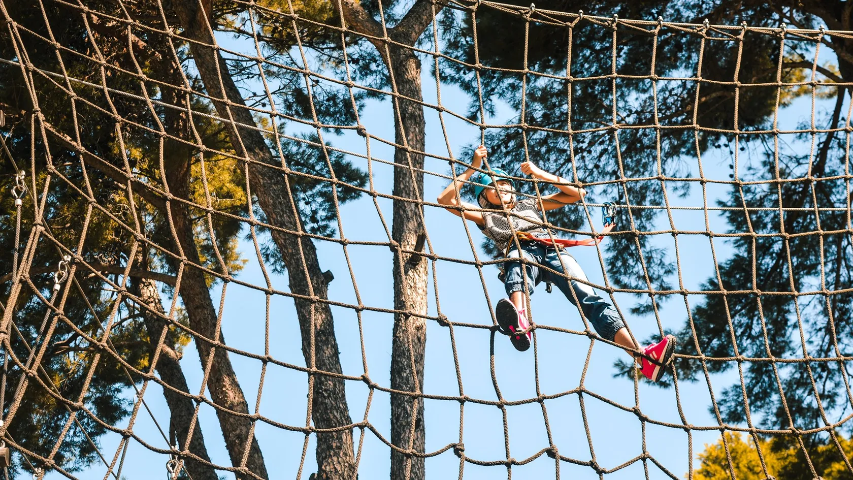 между лианами и мостами на верхушках сосен взрослые будут очарованы захватывающим видом, а малыши — близостью самого сверкающего аквапарка. 11 000 кв.м., 80 подвешенных «станций». Около 200 сосен, не менее 60 из них пригодились для размещения «станций приключений», скалолазания, дорожек, вертикальных сеток, качающихся стволов. У каждого свой путь, который вы выберете в соответствии со своей смелостью. Есть несколько уровней сложности для детей разного возраста.